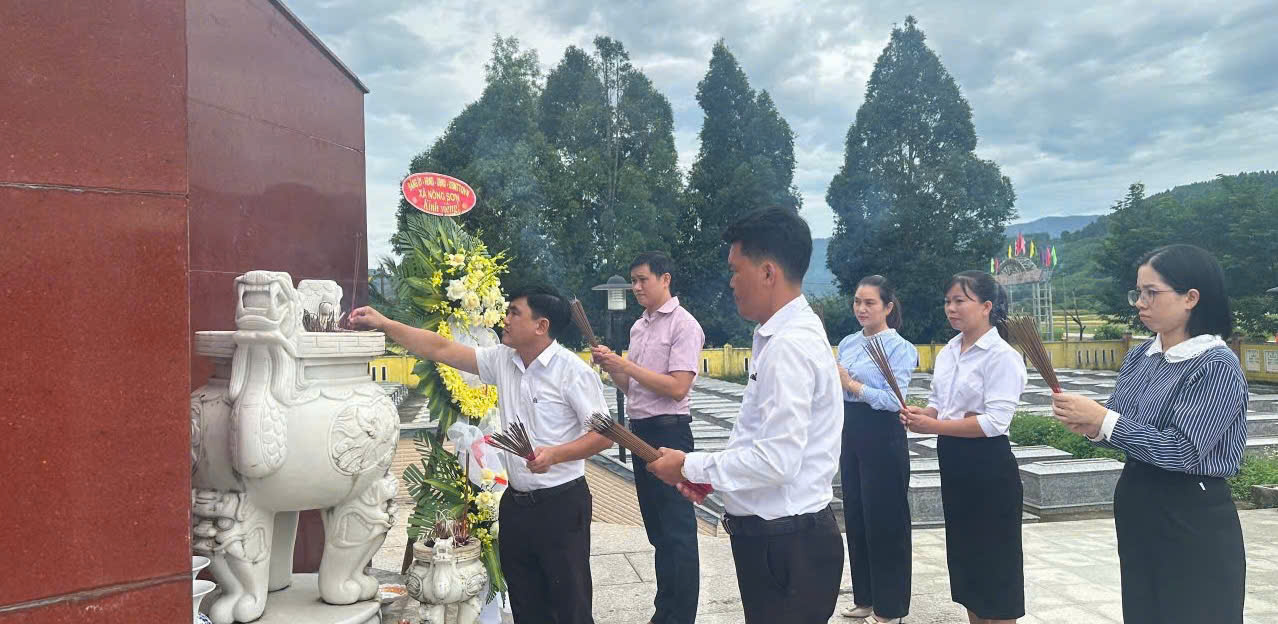 Chi bộ Văn phòng Đảng ủy xã Nông Sơn dâng hương, tưởng niệm các anh hùng liệt sĩ tại Nghĩa trang Sơn Viên