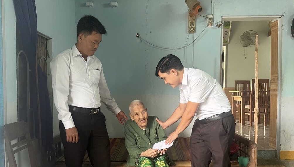 Chi bộ Văn phòng Đảng ủy xã Nông Sơn thăm hỏi, tặng quà Mẹ Việt Nam Anh hùng Nguyễn Thị Trinh tại thôn Phước Bình.