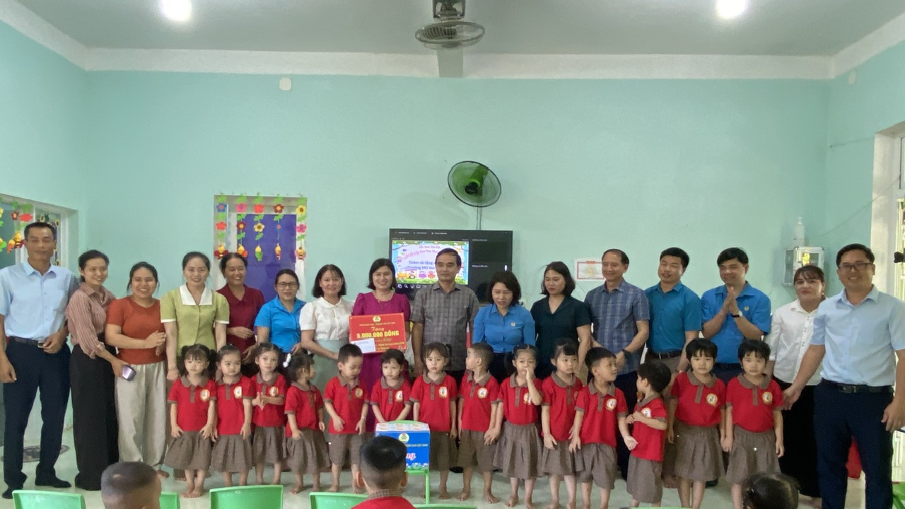 Đoàn công tác trao tặng 5 triệu đồng tiền mặt và 50 suất quà gồm bánh, sữa cho các em học sinh tại điểm trường Mẫu giáo Trung Thượng.