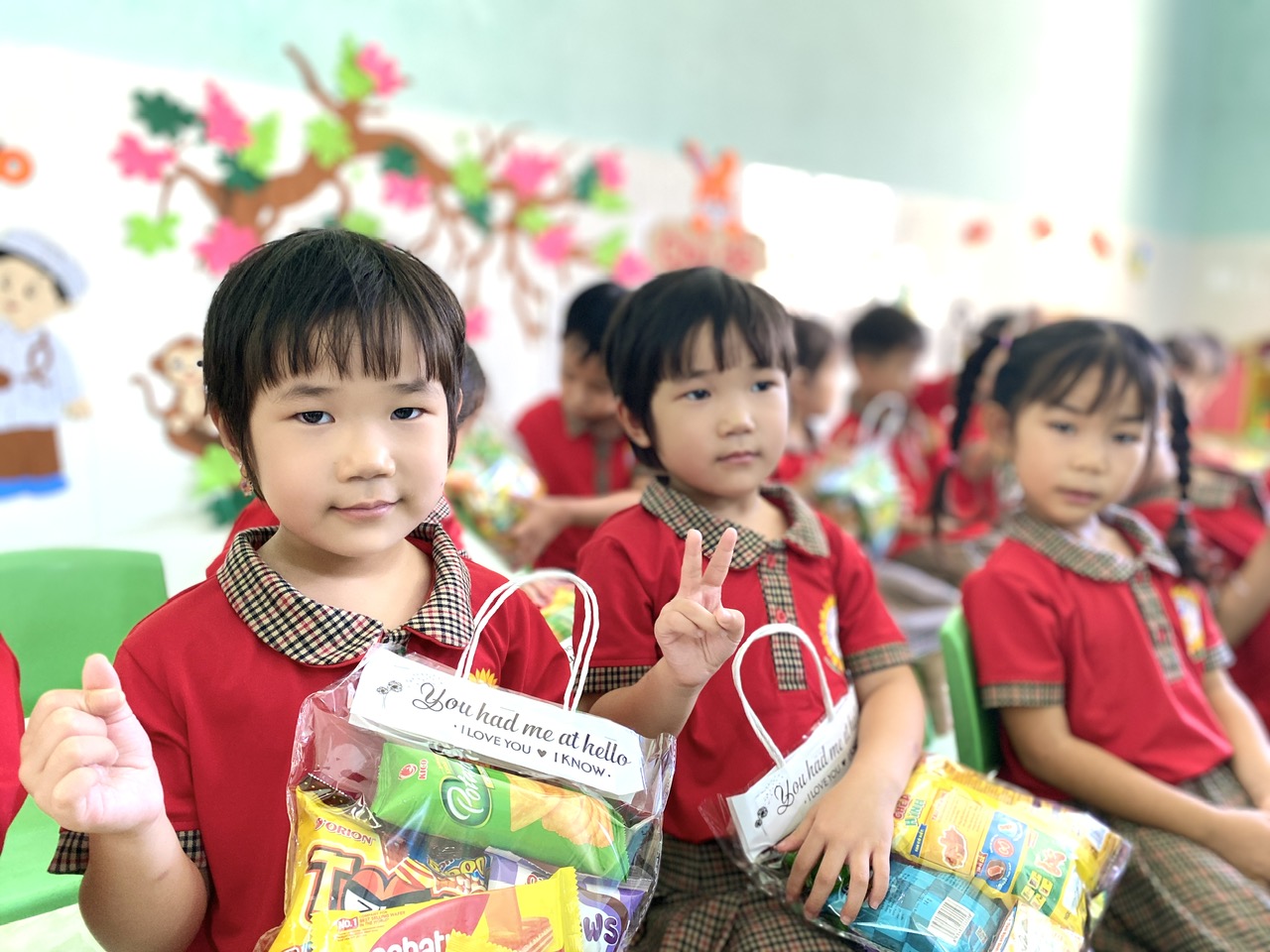 Học sinh trường Mẫu giáo Hướng Dương nhận quà Trung thu sớm.