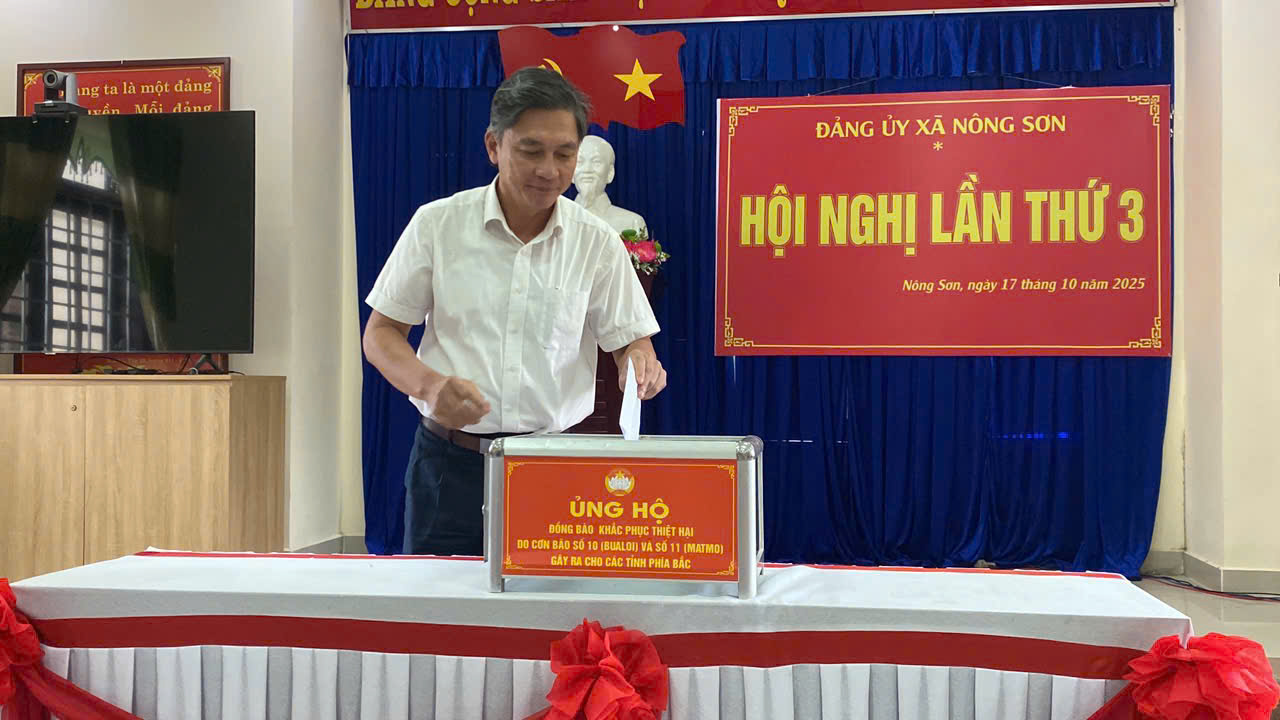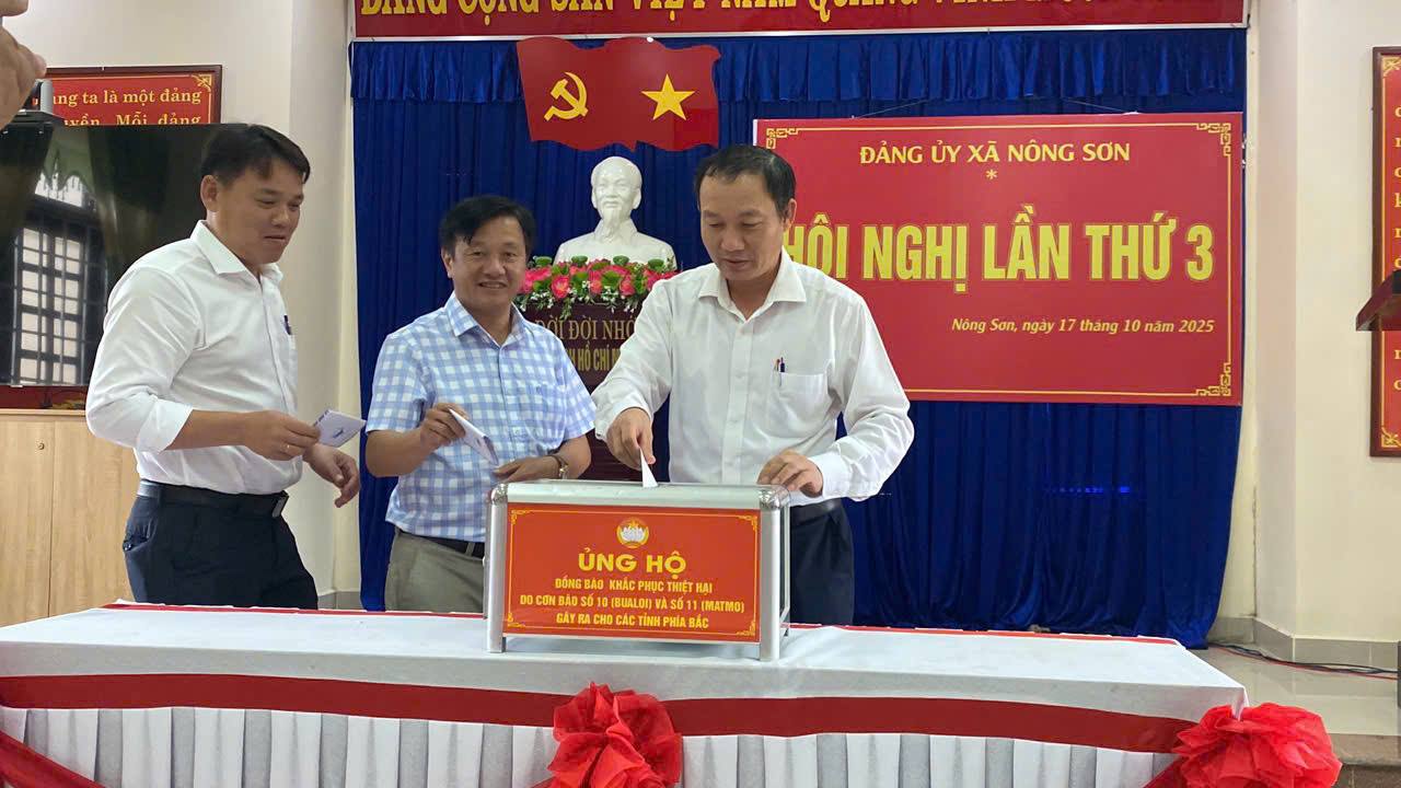 Hưởng ứng Thư kêu gọi của Ủy ban MTTQ Việt Nam xã Nông Sơn về việc chung tay giúp đỡ đồng bào các tỉnh phía Bắc và Bắc Trung Bộ khắc phục hậu quả cơn bão số 10, thời gian qua, nhiều cơ quan, đơn vị, trường học, doanh nghiệp cùng đông đảo cán bộ, công chức, viên chức và Nhân dân trên địa bàn xã đã tích cực tham gia đóng góp với tinh thần sẻ chia, tương thân tương ái.