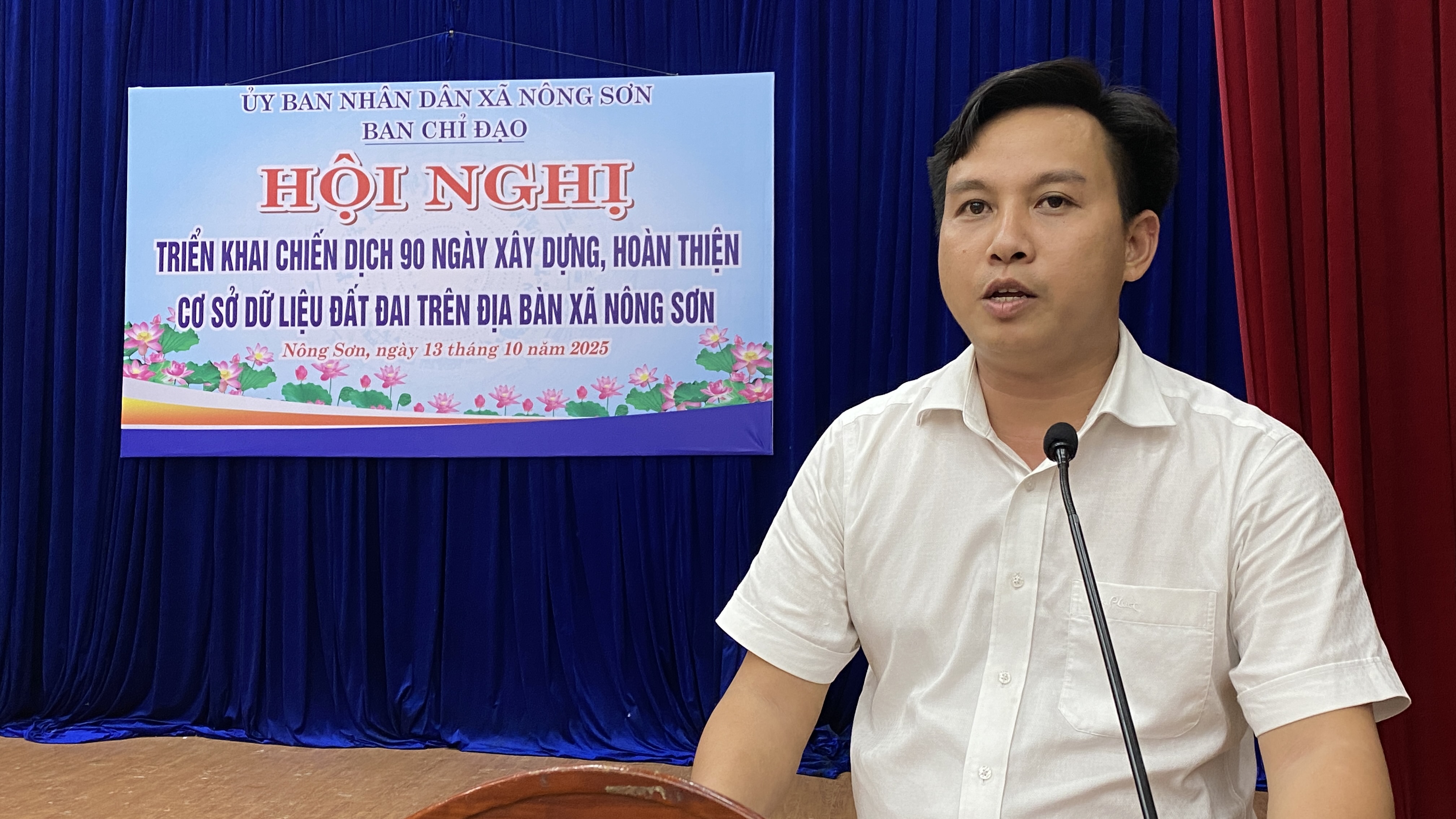 Tham dự buổi làm việc có Thường trực Đảng ủy xã; đồng chí Trần Văn Đoàn - Phó Chủ tịch UBND xã, chủ trì; cùng các thành viên Ban Chỉ đạo và Tổ công tác triển khai Chiến dịch 90 ngày xây dựng, hoàn thiện cơ sở dữ liệu đất đai trên địa bàn xã Nông Sơn; cùng đại diện 16 thôn trên địa bàn.