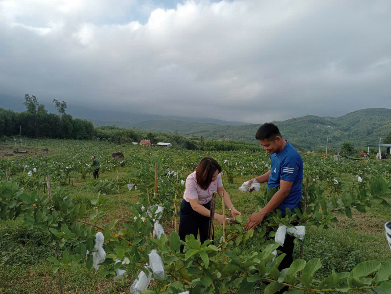 Cán bộ NHCSXH Quế Sơn đồng hành cùng hộ vay phát triển kinh tế vườn