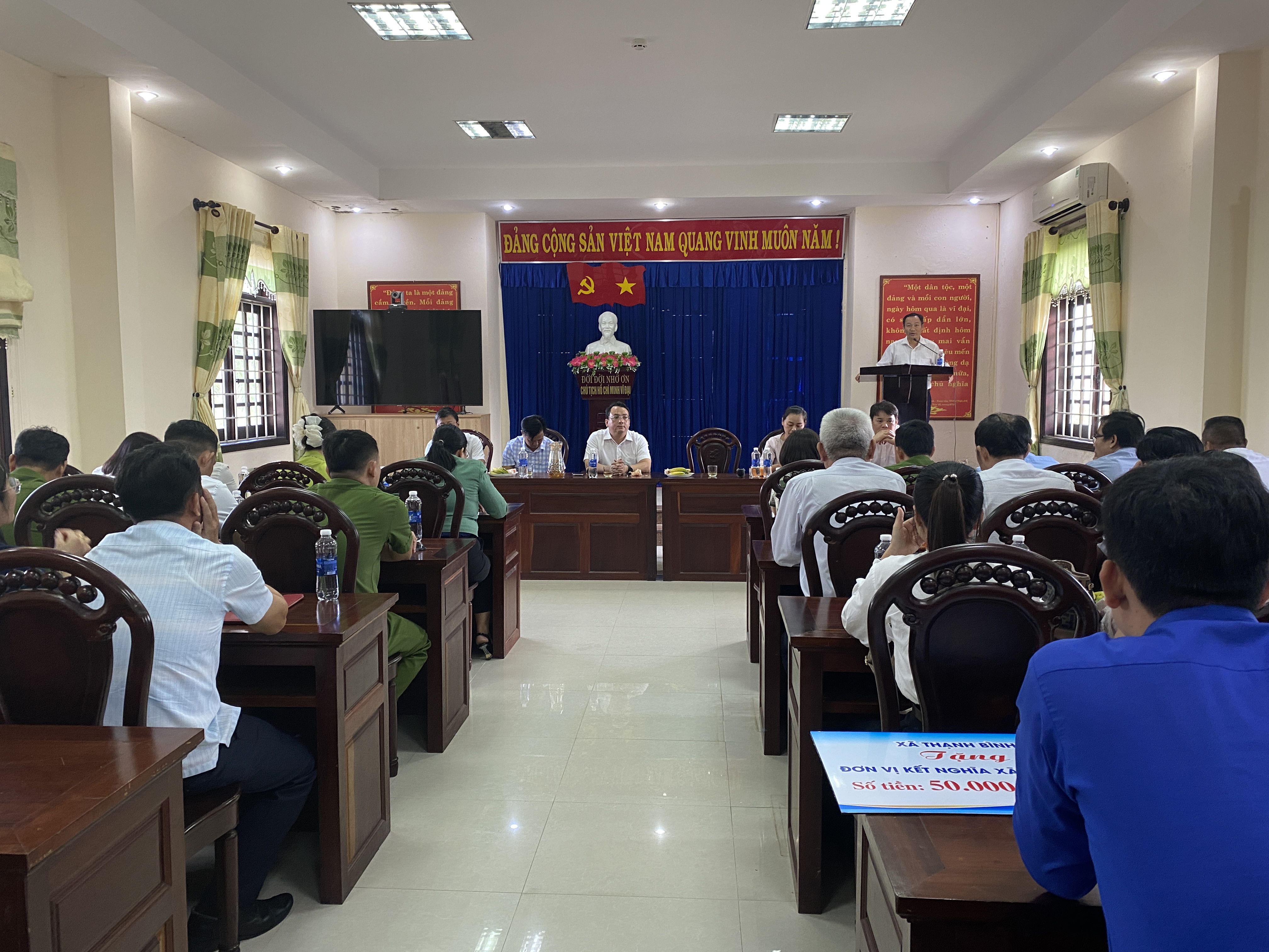 Phát biểu tại buổi gặp, đồng chí Trần Ngọc Tài cho biết: “Tình cảm kết nghĩa giữa Thạnh Bình và Nông Sơn không chỉ là sự sẻ chia vật chất mà còn là sự đồng hành, động viên về tinh thần. Mong rằng cán bộ và nhân dân Nông Sơn sớm vượt qua khó khăn, ổn định cuộc sống và phát triển kinh tế.”