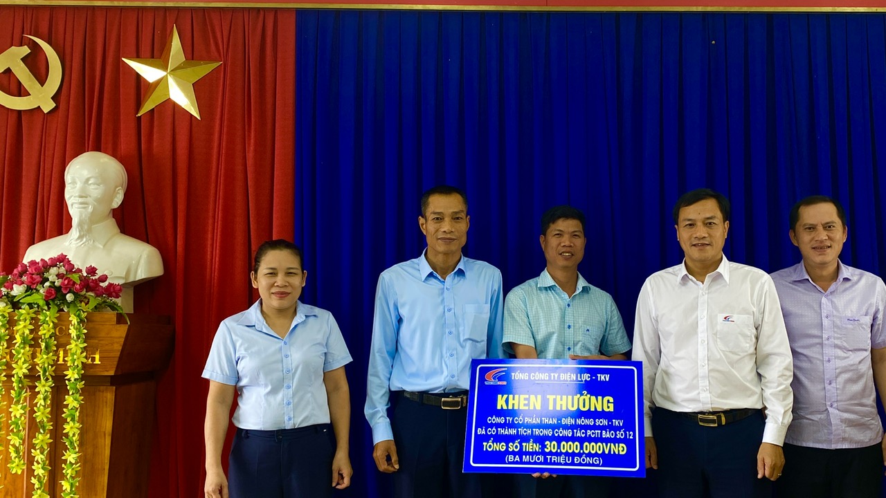Tổng công ty Điện lực – TKV cũng đã quyết định khen thưởng 30 triệu đồng cho tập thể Công ty Cổ phần Than – Điện Nông Sơn – TKV vì đã có thành tích trong công tác phòng, chống và khắc phục hậu quả thiên tai.