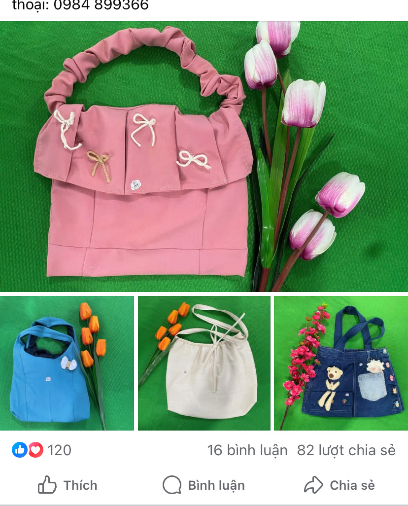 Đúng 7 giờ sáng ngày 26/11, trên trang Facebook cá nhân của thầy Minh, phiên đấu giá chính thức mở. Mỗi khung giờ một sản phẩm, mỗi sản phẩm mang một câu chuyện riêng: chiếc túi từ đồng phục cũ với nơ điểm nhấn; túi tote chế tác từ thân áo sơ mi với đường may học sinh chỉnh sửa tỉ mỉ; túi jean tái chế vừa bền vừa trẻ trung…