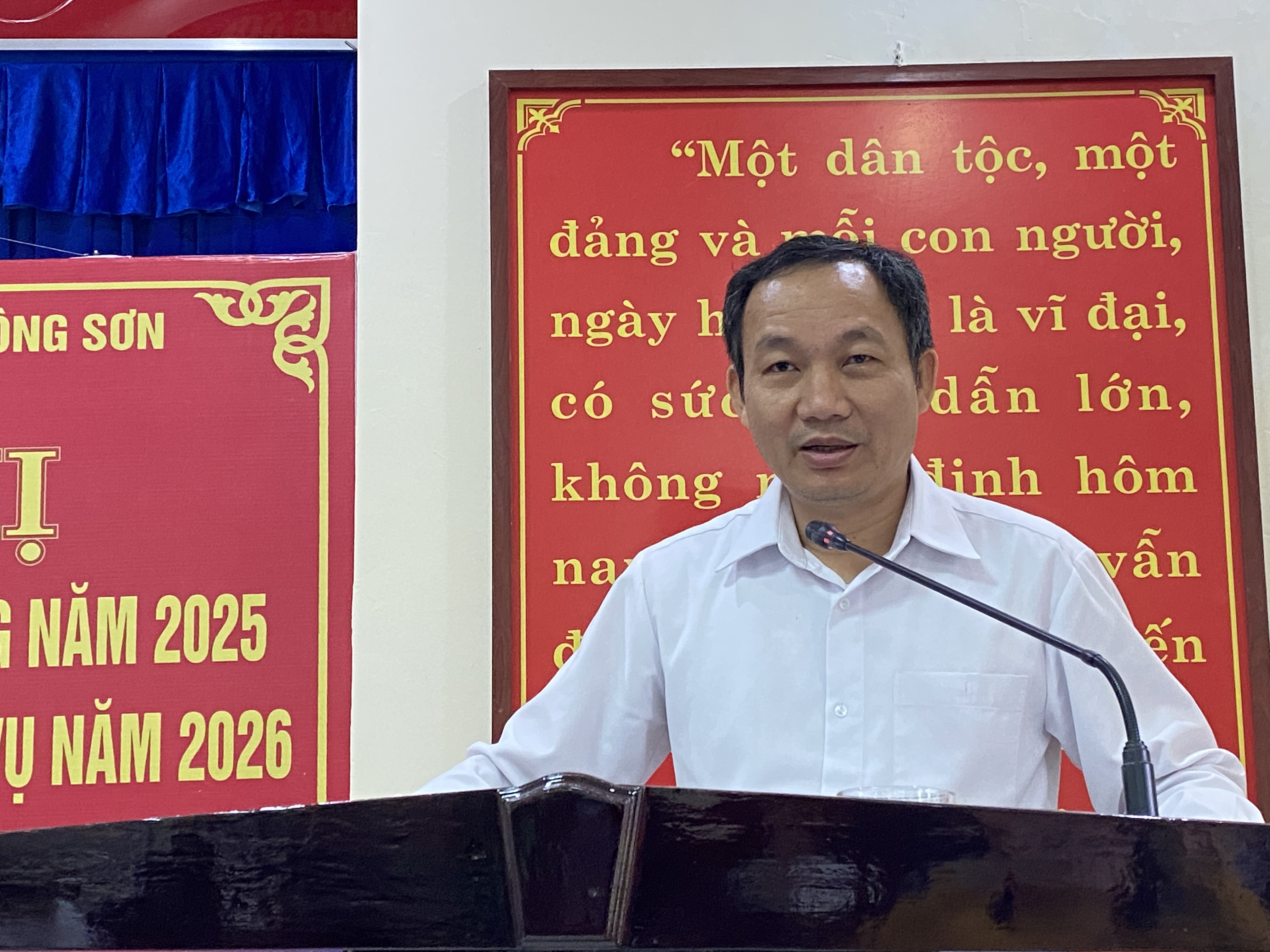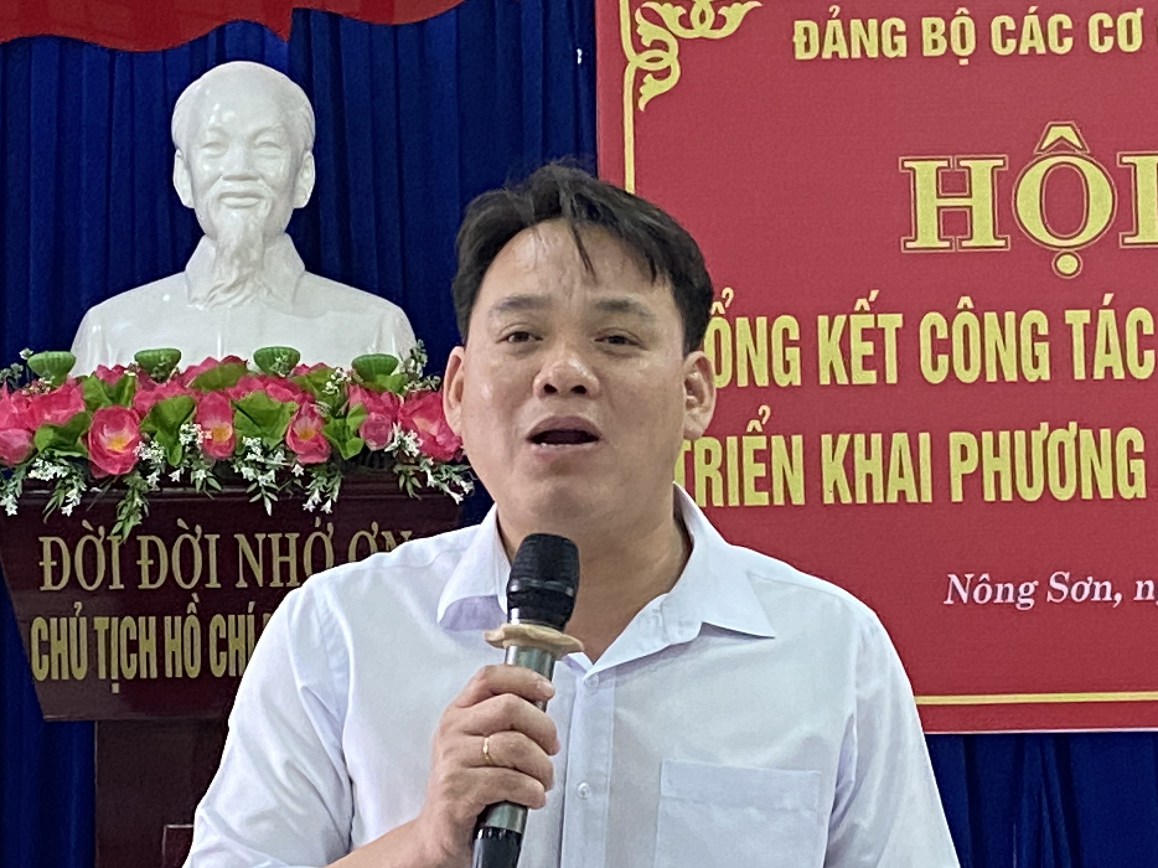 Đồng chí Ngô Văn Sỹ, Bí Thư Đảng ủy xã Nông Sươn phát biểu tại hội nghị