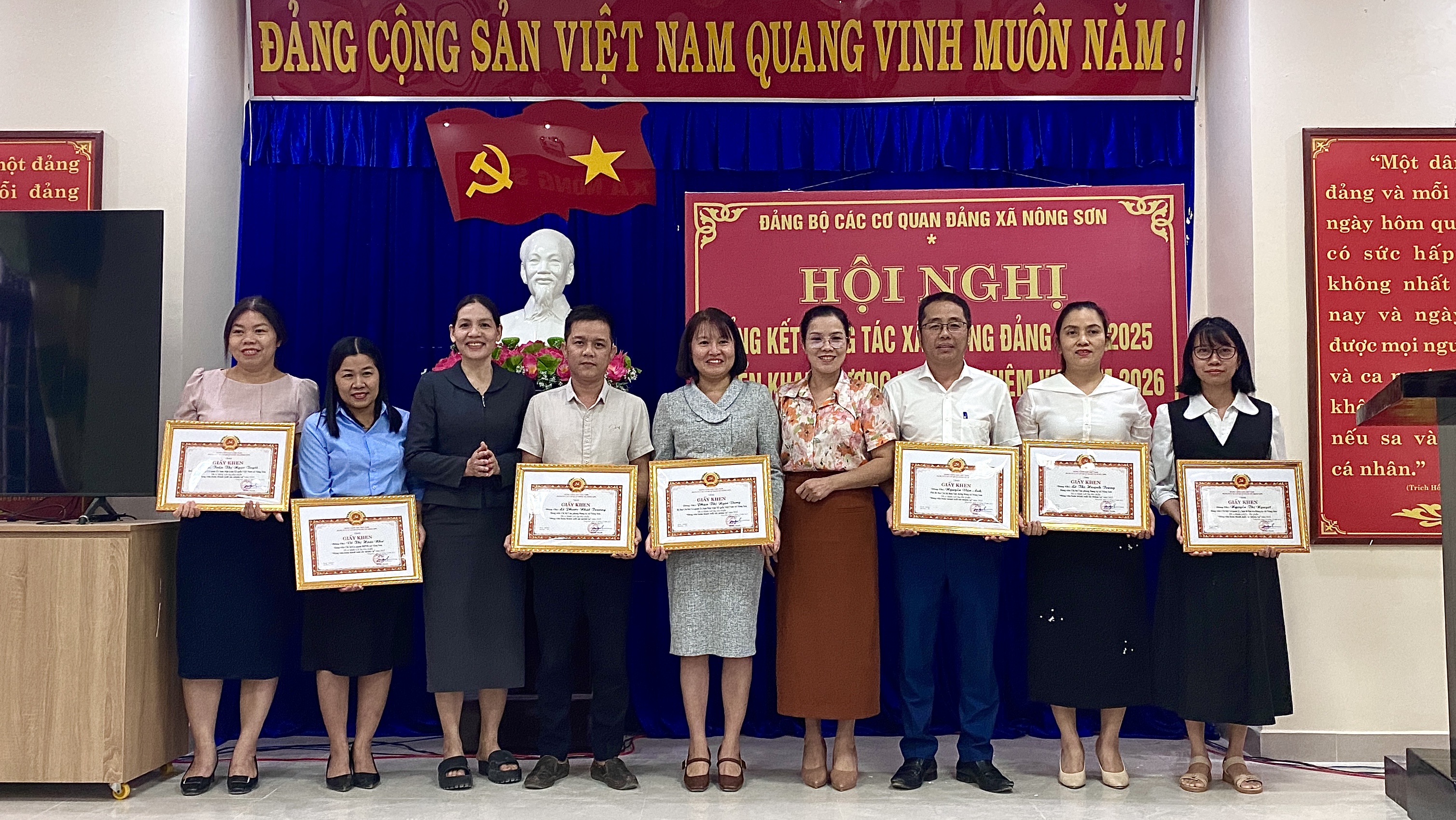 Dịp này, Đảng ủy các cơ quan Đảng xã Nông Sơn đã biểu dương, khen thưởng 1 tập thể và 7 cá nhân hoàn thành xuất sắc nhiệm vụ năm 2025.