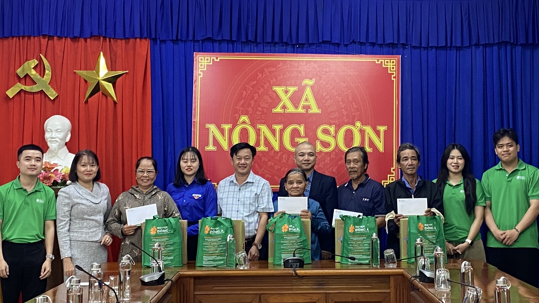 Trường Đại học Đông Á trao 5 suất quà (1,5 triệu đồng và nhu yếu phẩm/ suất) cho 5 hộ dân có hoàn cảnh đặc biệt khó khăn, bị thiệt hại nặng nề do mưa lũ trên địa bàn xã Nông Sơn.