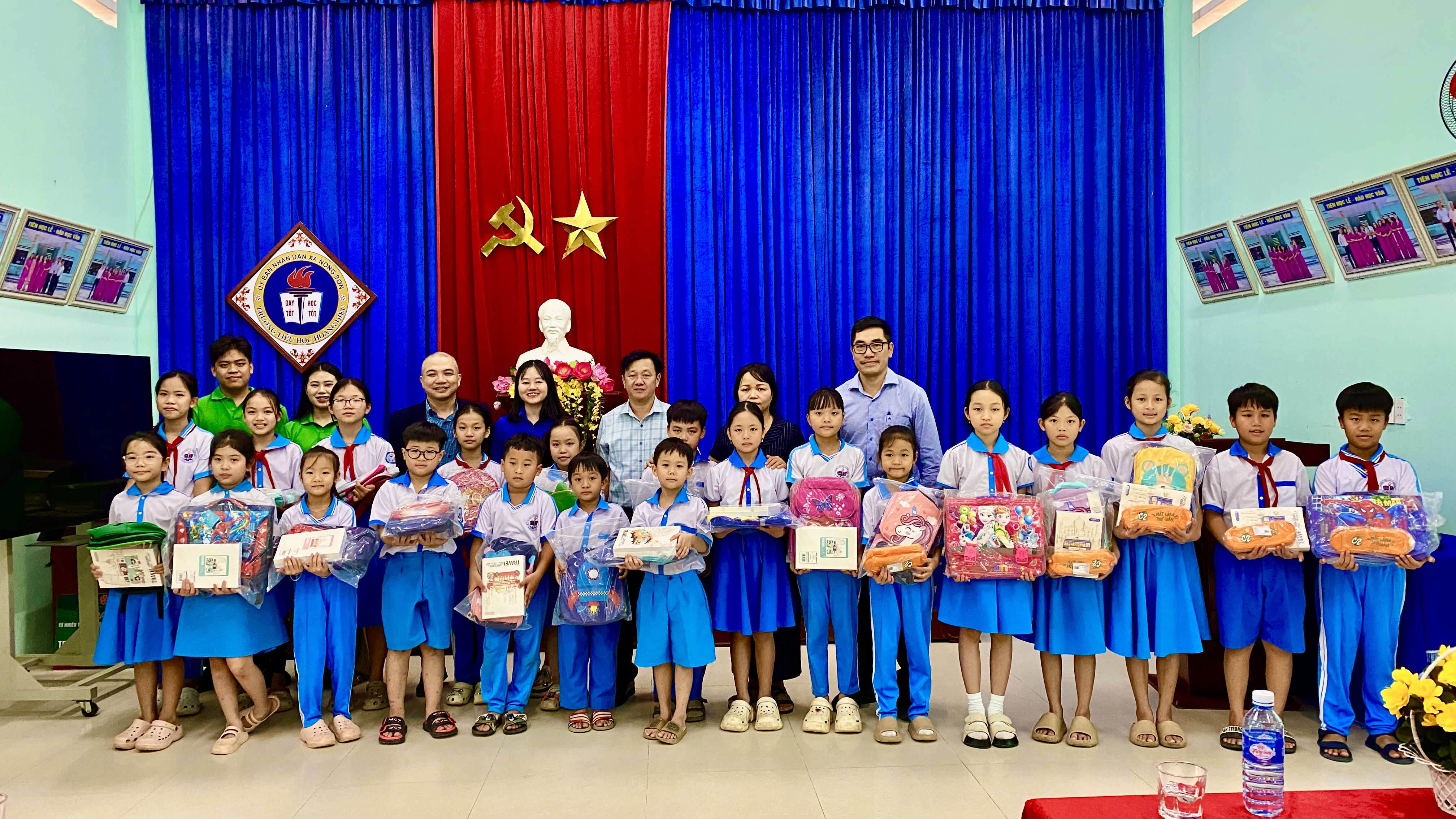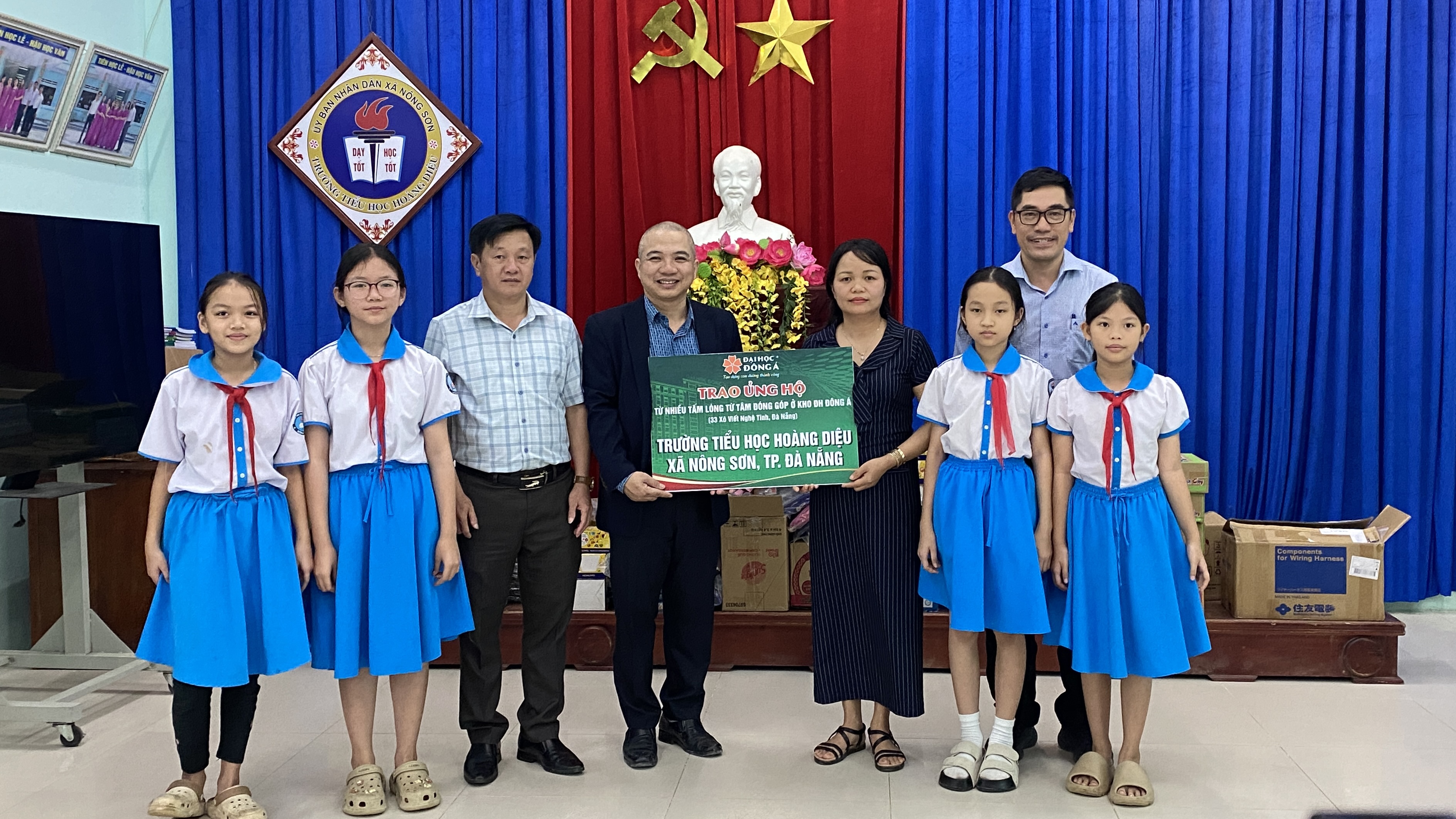 Đoàn công tác Trường Đại học Đông Á trao tặng vở, bút, dụng cụ học tập và các nhu yếu phẩm cho học sinh tại Trường TH Hoàng Diệu